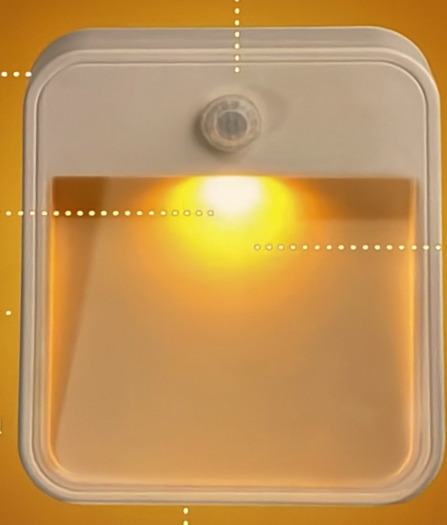 Hier eigenen sich kleine Lichtlösungen wie im Beispiel links. Eine batteriebetriebene, gut abgeschirmte Leuchte mit 12 Lumen reagiert auf Bewegung und erleuchtet einen weiten Bereich – im angenehmen blendfreien amber-Licht. Solche kleinen Leuchten können an unterschiedlichen Stellen befestigt werden: