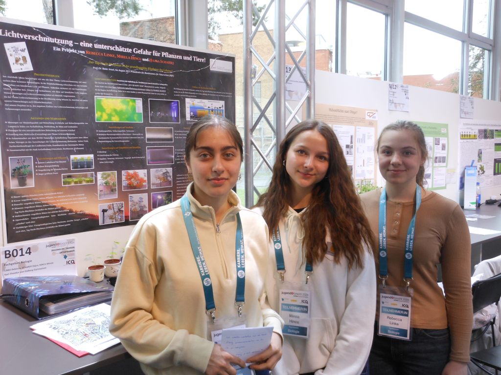 Die Schülerinnen Hajra, Rebecca und Mirela vom Dalberg-Gymnasium Aschaffenburg gewannen einen Hauptpreis für ihre Projektarbeit „Lichtverschmutzung – eine unterschätzte Gefahr für Pflanzen und Tiere!“. https://www.dalberg-gymnasium.de/artikel/48235