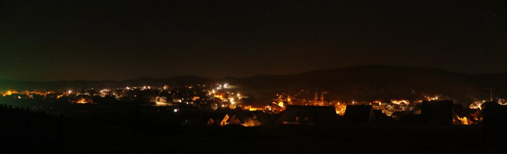 Dies ist der guten Arbeit von Herrn Reinhard vom Bauamt zuzuschreiben. Auch wenn eine Neuplanung mit niedrigen Masten und einer Fokkussierung auf den Gehweg gestaltet werden würde, ist der Effekt – insbesondere durch die Umrüstung der Peitschen – unerwartet enorm. Von den umgebenden Hügeln kann man sehen, dass das Licht kaum nach außen dring. Der Effekt ist verblüffend.