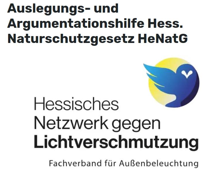Das Hessische Netzwerk gegen Lichtverschmutzung – Fachverband Außenbeleuchtung bietet eine Zusammenstellung an Informationen als Auslegungs- und Abwägungshilfe bezüglich künstlicher Beleuchtung im Rahmen des Hessischen Naturschutzgesetzes an.